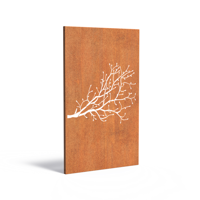 Gjerde i cortenstål med utskjæring: Gren med skudd