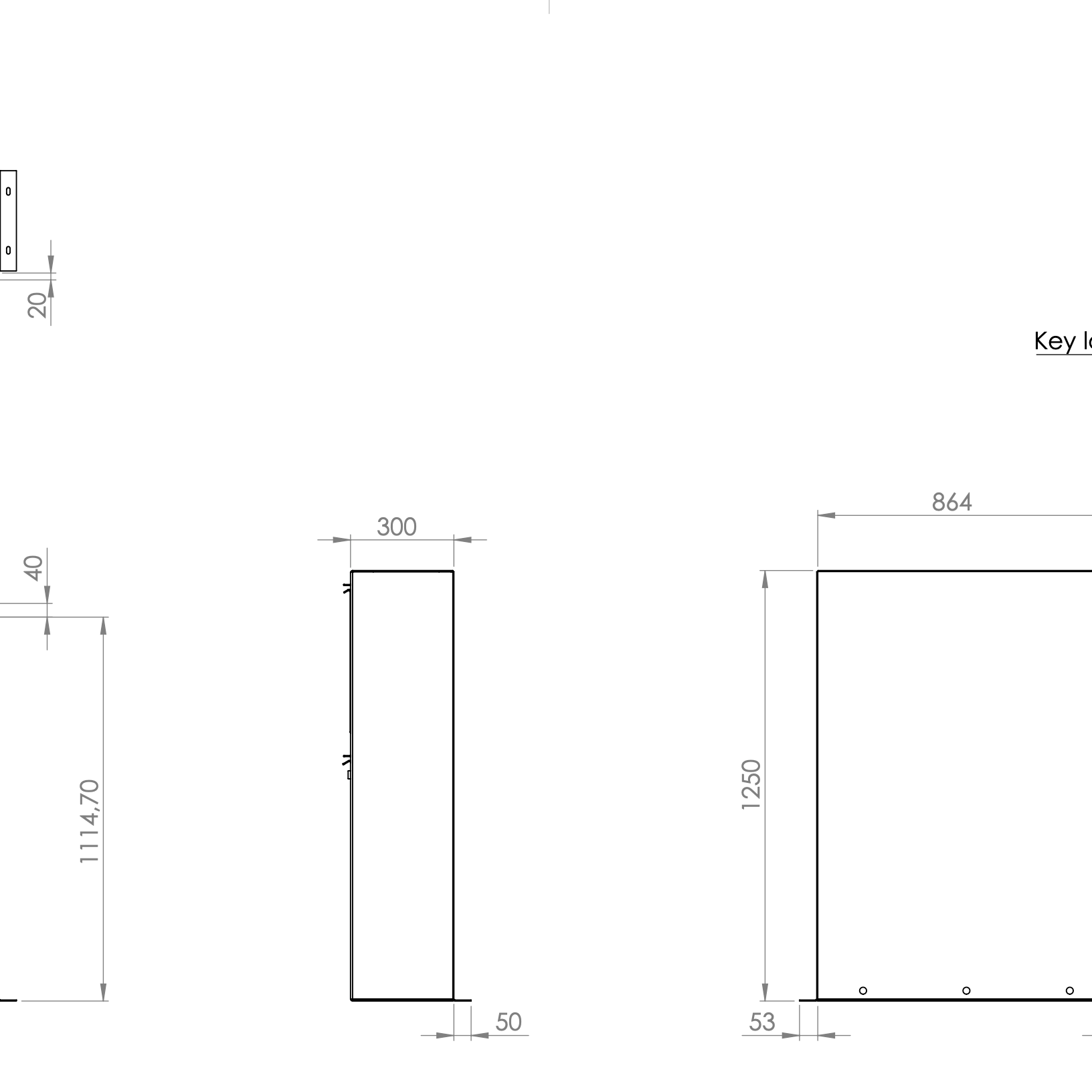 Postkassen er 87 cm bred (sett forfra) x 30 cm dyp x 125 cm høy. Vekt 40 kg.