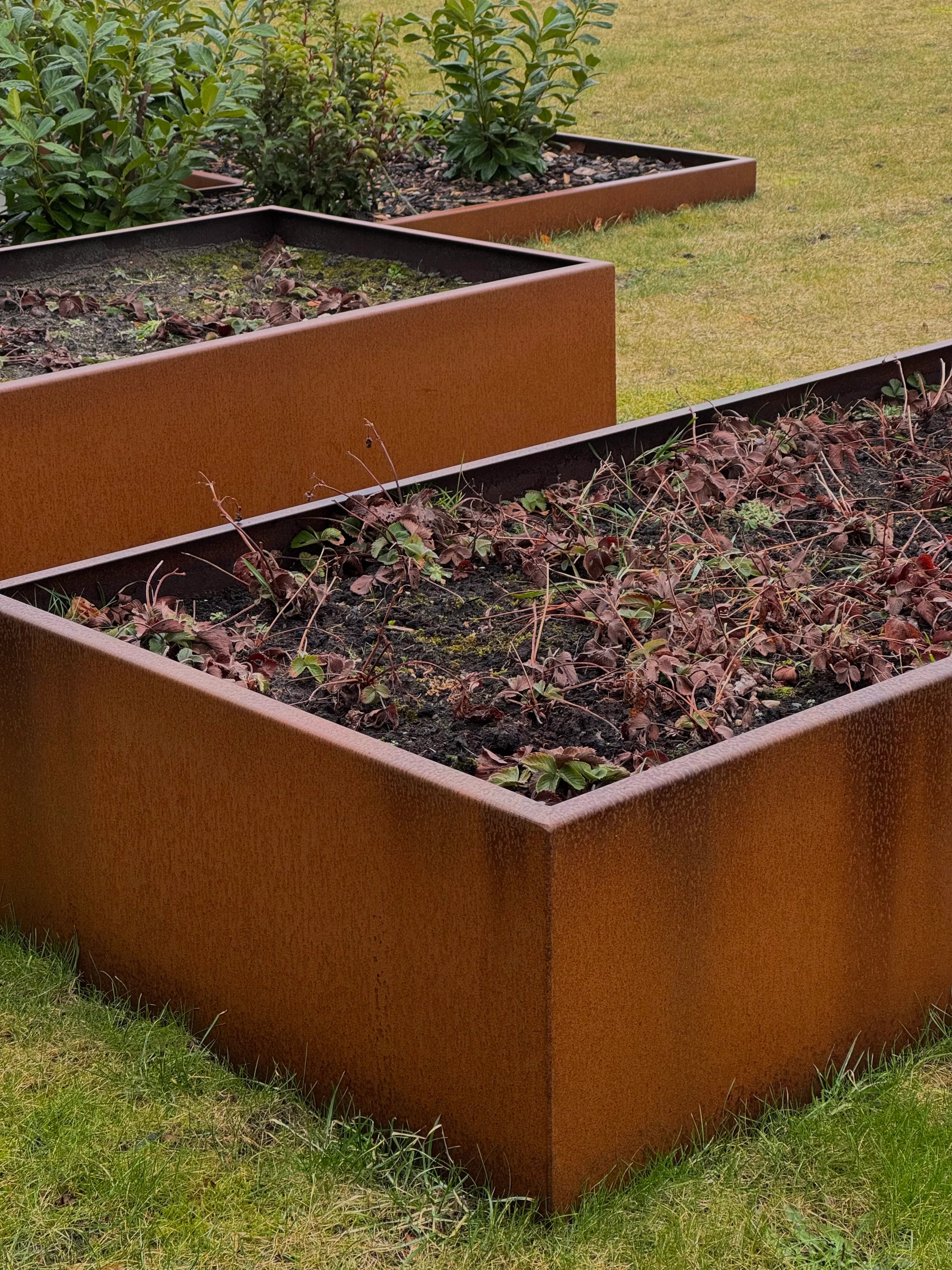 - Vi bruker alltid minst 3 mm cortenstål til våre plantekasser.